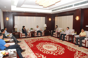 在公司貴賓室,朱會長與我公司和卓爾棉業集團的負責人進行了座談。市委副書記、市長吳錦參加了座談會,并就當前棉花及棉紡行業的有關情況同朱會長交換了意見。