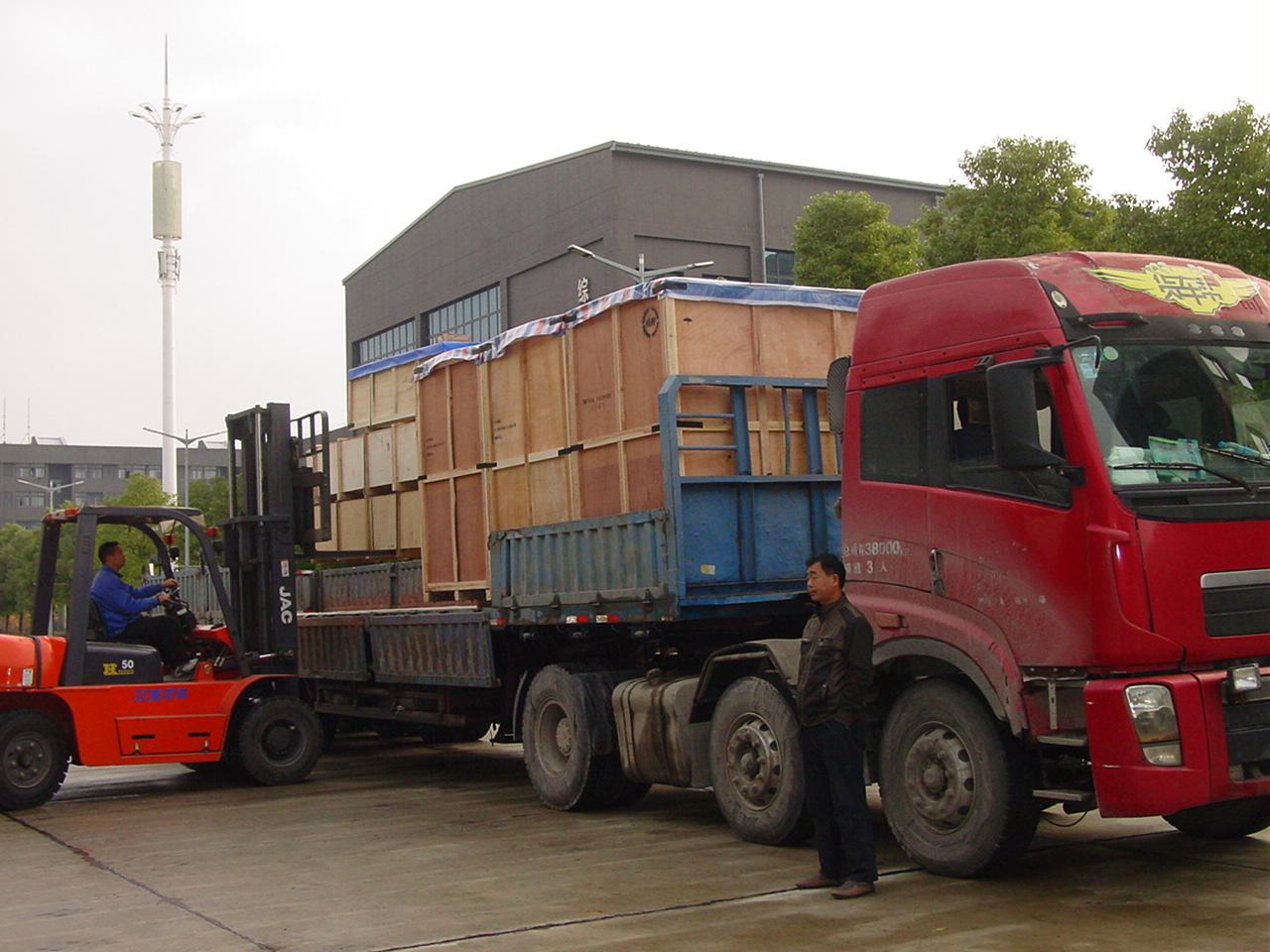 圖為天門紡機(jī)公司生產(chǎn)的69臺高檔并條機(jī),整裝待發(fā),現(xiàn)已分期分批出口越南。
