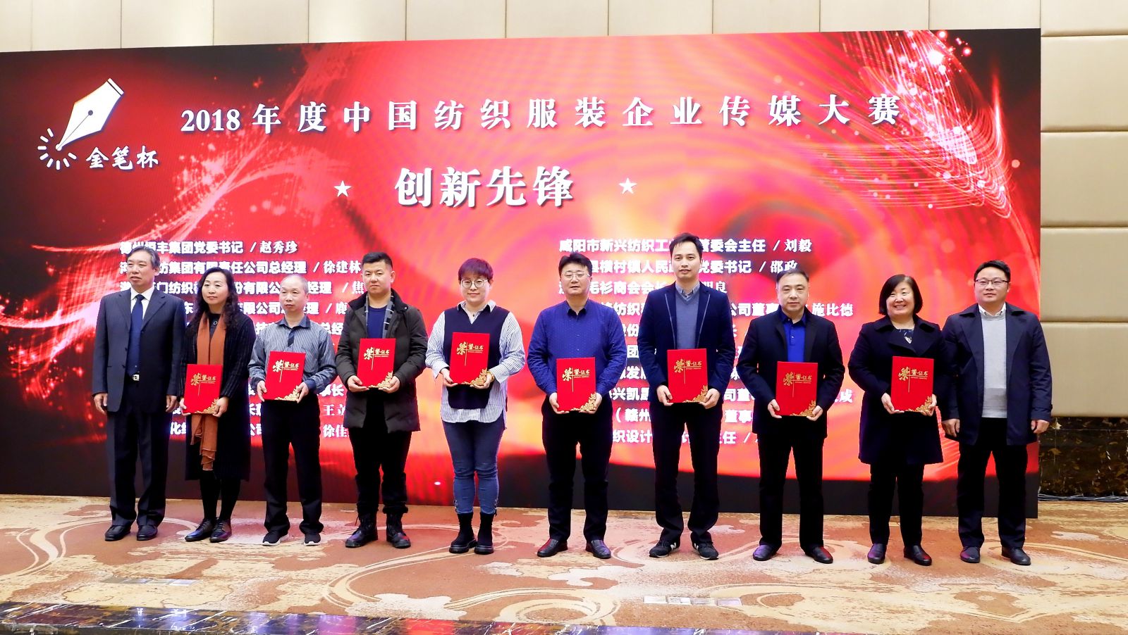 會上,“金筆杯”2018年度中國紡織服裝企業傳媒大賽隆重揭曉,天門紡機榮獲“綜合實力典范”榮譽稱號,天門紡機總經理焦倫進榮獲“創新先鋒”榮譽稱號。