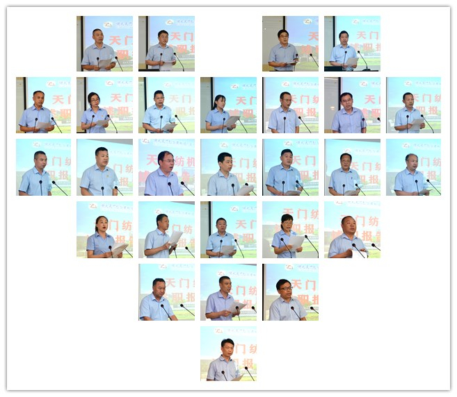 為了應對經濟下行、紡織行業增速變緩以及中美貿易摩擦帶來的不利因素的影響,加強員工的緊迫感和企業凝聚力,天門紡機在6月初至7月上旬,開展了全員述職和全員考評活動。其中,中層管理干部半年述職報告會成為活動的焦點。2019年7月12日下午1:30,公司科技大樓四樓會議室座無虛席,40多名準備述職的中層干部嚴陣以待,14名分別代表部室、車間一線員工和公司高管層的評委以及3名在外邀請的評委全神貫注,一場精彩紛呈的述職報告會拉開序幕。根據排序,述職干部逐一走上講臺,匯報自己的履職情況,各評委參照評分標準,打下自己深思熟慮的評分。經過近6個小時的緊張會議,公司中層干部全部述職完畢,大家終于緩下一口氣,紛紛交流彼此在述職中的得失。