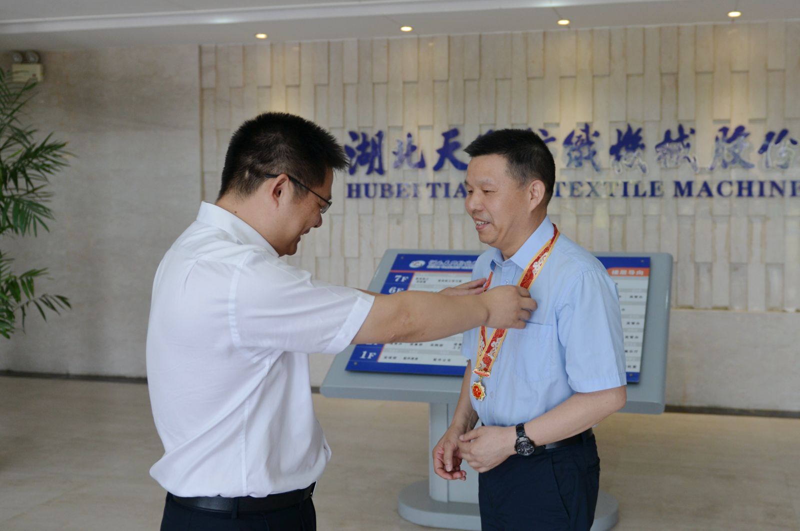 天門市委副書記雷華為沈方勇董事長佩戴紀念章