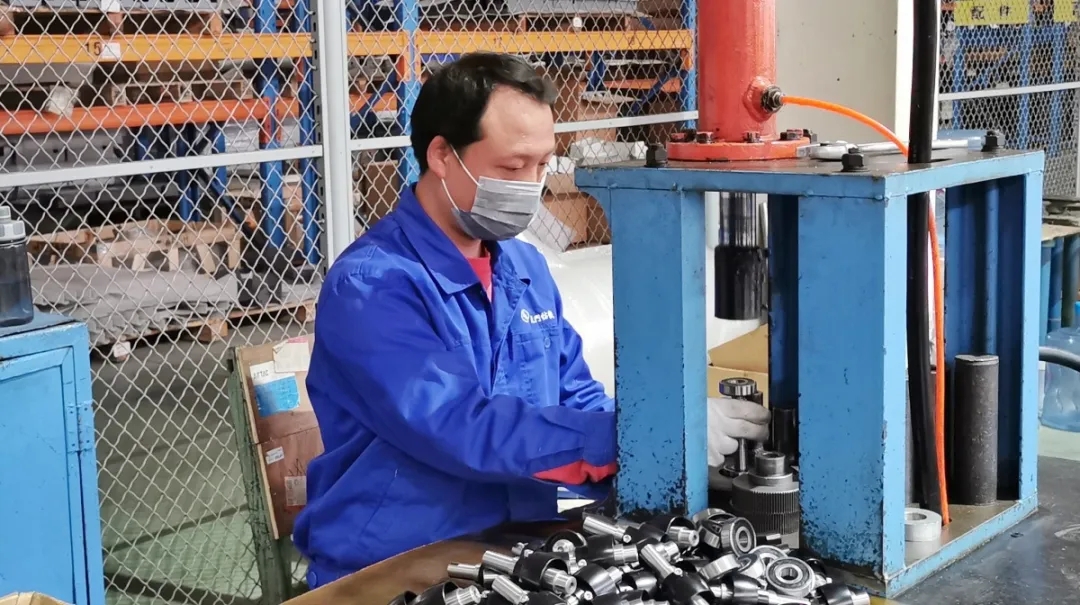 裝配工曾碧輝抓緊發貨需要配套的軸承組裝