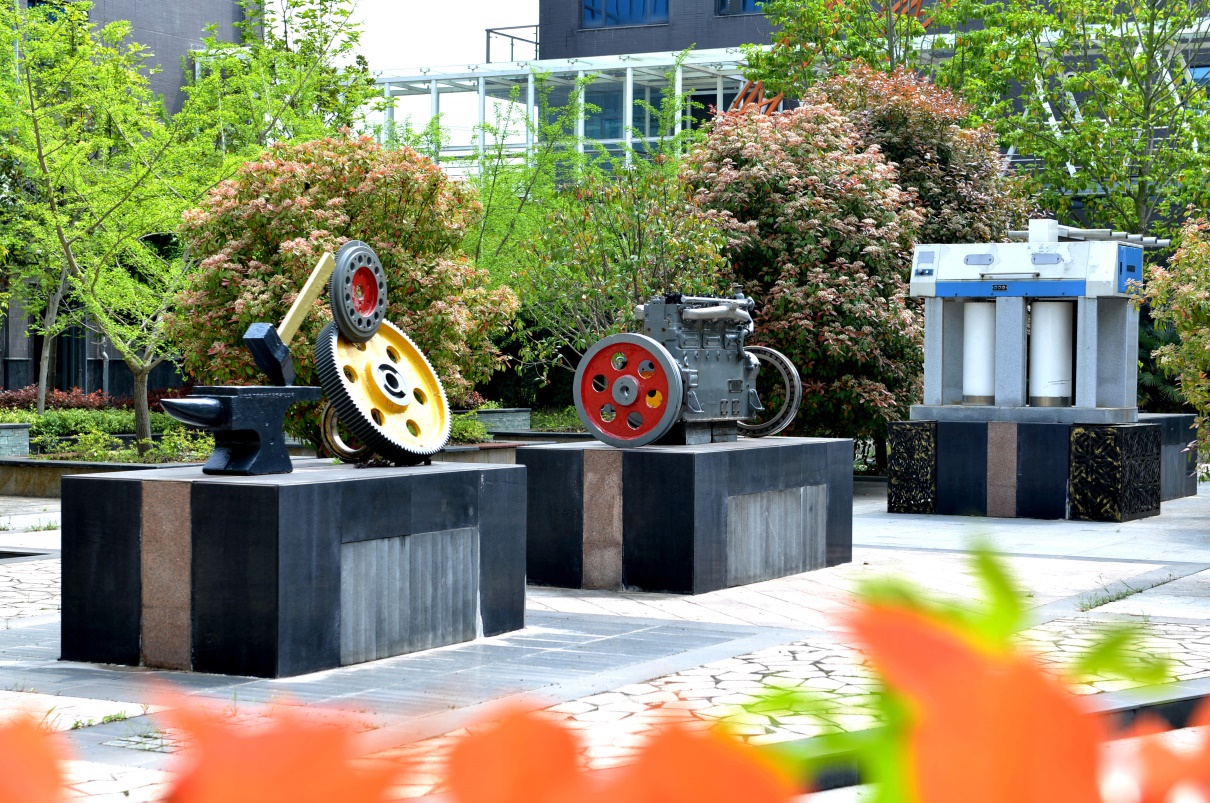 記載紡機發展歷史的雕塑群屹立廠區,一棟棟現代化廠房排列有序、氣勢恢宏 ,科技樓、人才樓高聳靚麗、氣宇 不凡,林蔭小道曲徑通幽,仿古長廊休閑別致,樓宇建筑與優美環境相互掩映。