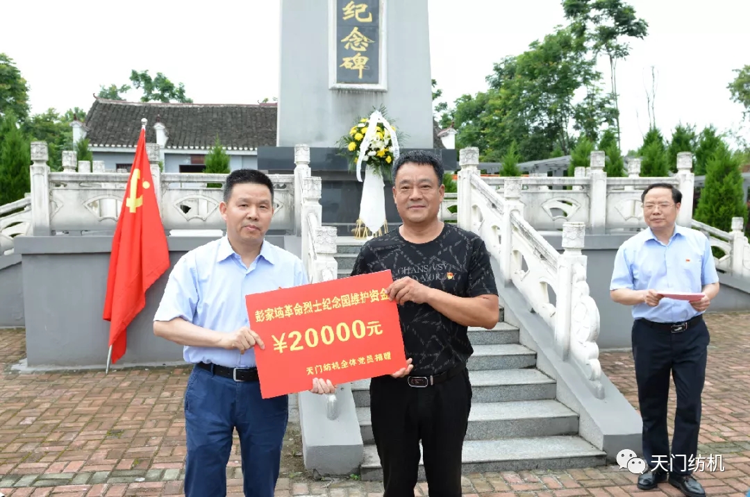 在脫貧攻堅的決勝戰場上,天門紡機積極響應黨和政府的號召,投身“百企幫百村”活動,除了定置貧困戶到廠就業外,還積極主動開展定向捐款。2019年,向盧市大橋、彭家垴烈士紀念園捐贈102萬元。2018年,開展定向扶貧,向石河鎮諸葛村抗旱水利基礎設施、熊河村排澇閘配套工程等捐贈23萬元。