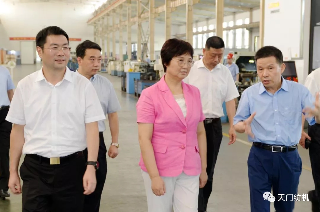 王主任一行參觀了天門紡機生產(chǎn)車間,詳細(xì)了解了紡織行業(yè)發(fā)展和公司主導(dǎo)產(chǎn)品研發(fā)、生產(chǎn)情況,并在公司召開了座談會。