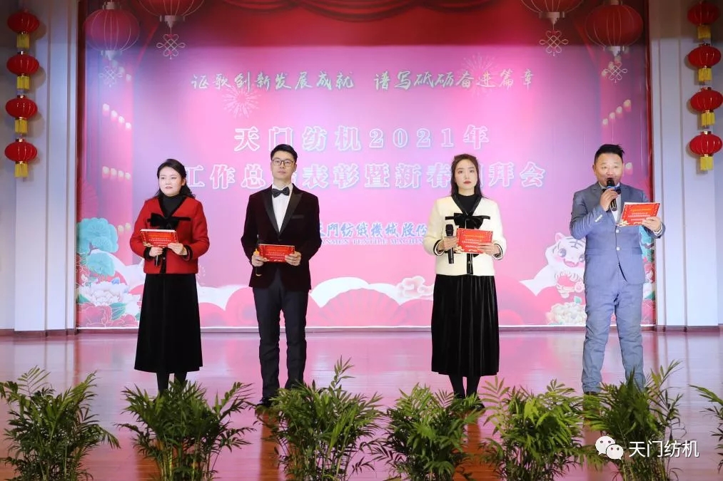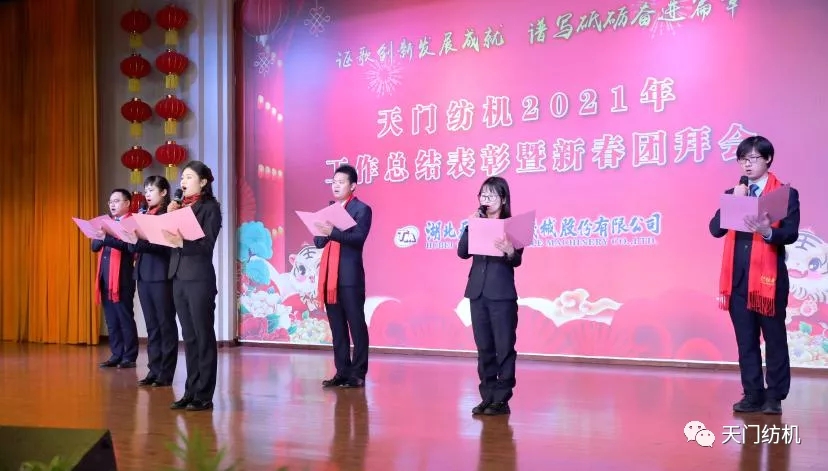 金牛奮蹄去,瑞虎踏雪來。1月29日,天門紡機的大禮堂燈光璀璨、歡聲笑語,2021年工作總結表彰暨新春團拜會隆重舉行,全司員工歡聚一堂,共賀虎年新春。