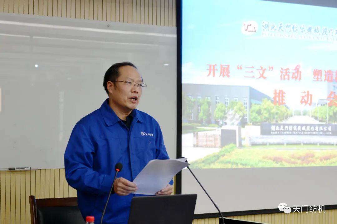 魯德文要求,一是統一思想,提高認識:“三文”活動的理念既是在當前國際形勢復雜多變、新冠疫情反復無常、國內經濟受到嚴重沖擊、行業形勢日趨嚴峻的背景下提出的,目的和意義只有一個,就是要通過“三文”活動全面提高員工素質、塑造新型員工隊伍、建立現代企業管理制度、實現高質量發展,以應對復雜多變的國內外經濟形勢,讓天門紡機立于不敗之地;“三文”活動的理念也是公司的一種文化傳承。十多年前,公司制定實施“提精神、創精品、當精英”的“三精”戰略,并以此為引領,推動新產品開發、技術改造、品牌建設等工作,促進企業快速發展;兩年前,公司提出優化社會、市場、內部“三個”生態的理念,通過營造“以人為本”的內部生態、共生共享的社會生態、利他共贏的市場生態,把包容、共享、全球化的發展理念貫徹到企業生產經營之中,影響到行業及社會多個層面,使公司形象得到極大提升、軟硬實力與日俱增,推動了企業高發展。“三文”與“三個生態”一脈相承,著重于員工素質教育、塑造新型員工隊伍、營造良好的內部生態,其落腳點和最終目標與后者是完全一致的。同時,開展“三文”活動是企業文化建設永不過時、永遠不可或缺的重要內容。通過文明禮儀教育,提高員工個人素質、樹立企業良好形象,是當前公司生產經營和優化人力資源的內在需要;通過開展文化素質提升活動,引導員工樹立正確的世界觀、人生觀、價值觀是員工自身工作、生活和企業文化建設的主觀要求;通過文體活動,促進員工心身健康、增強企業凝聚力是企業和員工共同的美好愿望。因此,我們要把“三文”活動上升到企業生產經營和文化建設一個更新的高度。二是明確特點,創新亮點:“三文”活動是長期性活動,是全方位的活動,是全員參與的活動,因此,我們一要堅持不懈,不斷努力;二要各方配合,通力協作;三要全體總動員,積極投入到各項活動中。同時,我們要多出主意、多想點子,創新活動的方式方法或形式內容,創建天門紡機特色文化、特有文化和經典文化。三是增強責任感,層層抓落實:在“三文”活動的通知中,我們已經確定了組織機構,明確了目標任務,希望公司各部門負責人、活動小組各位負責同志,切實擔起責任,抓好落實。四是科學制定計劃,注重實效:我們在制定計劃時,既要合理安排時間,兼顧公司正常的生產經營,又要統籌安排,協同推進,使生產經營與文化建設相得益彰。