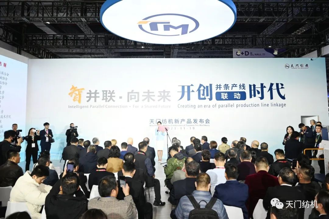 2023年11月19日,2022中國國際紡織機械展覽會暨ITMA亞洲展在國家會展中心(上海)拉開帷幕,天門紡機在展會上召開了主題為“智并聯?向未來——開創并條產線聯動時代”的新產品發布會。
