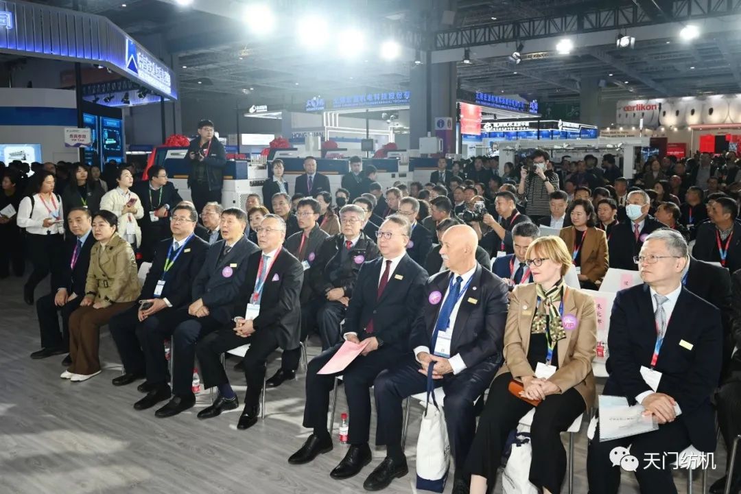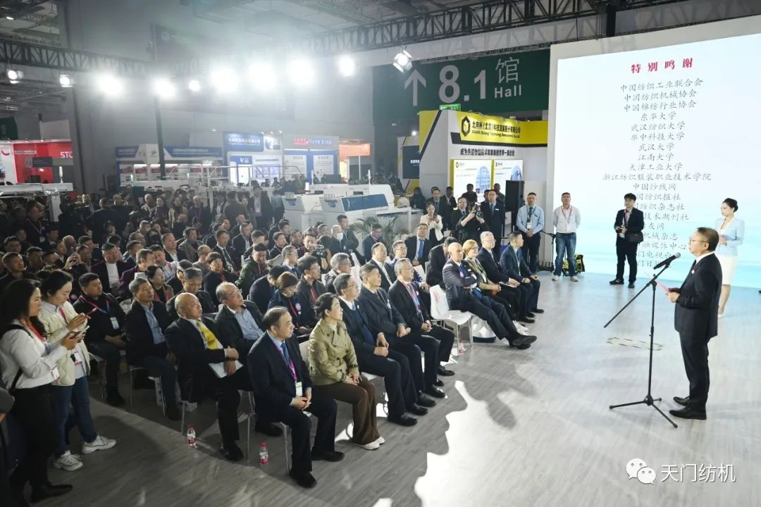 中國紡織工業聯合會會長孫瑞哲,副會長夏令敏、徐迎新,老領導張延愷副會長和歐洲紡織機械制造商委員會主席Mr. Ernesto Maurer等嘉賓共同揭幕,天門紡機T2、T3系列新產品正式亮相。