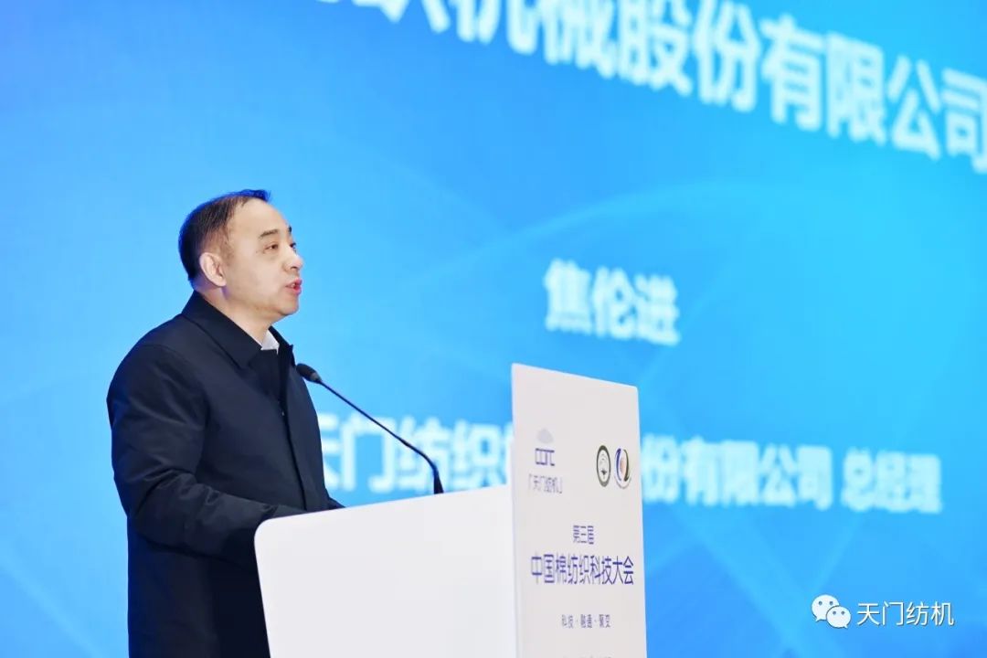 天門紡機總經理焦倫進在致辭中表示,“智能制造是紡織行業實現提檔升級的發展方向,智能化、信息化更是必然趨勢,需要通過加強基礎管理和技術創新來化解紡織企業危機,實現可持續發展。”天門紡機作為并條機的專業生產廠家,一直秉承“把并條做精、企業做強”的初心,始終堅持把技術創新作為工作的重點,公司推向市場的T1系列并條機,以“并條工序全自調勻整”的理念席卷市場,受到了國內外客戶的青睞,現已成為紡織家族的主力產品。今年11月在上海紡機展覽會上,推出了全新一代的T2、T3系列并條機,以“智并聯.向未來,開創并條產線聯動時代”的新理念引來全行業廣泛關注。真正做到了通過不斷創新,實現高質量發展,今后將更加堅定發展信心,為棉紡織行業發展做出貢獻。