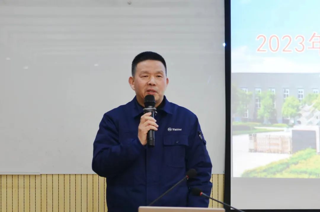17名售后服務(wù)人員作了2023年度工作總結(jié)及技術(shù)交流;樊早兵總監(jiān)作專業(yè)知識(shí)講座;鄭強(qiáng)總工程師安排布置了T1系列并條機(jī)改進(jìn)工作事項(xiàng);楊文峰副總經(jīng)理作案例分享;于少波主任作經(jīng)驗(yàn)分享。